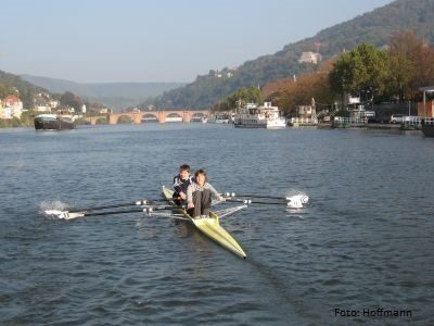"Beim Rudern geht es immer vorwärts, das berühmte Zurückrudern gibt es eigentlich nicht." Man kann vieles lernen, wenn man sich mit Ruderern unterhält - noch mehr, wenn man ihnen zuschaut oder versucht, mitzurudern. Rudern ist eine hohe Kunst, die Kraft, Geschmeidigkeit, Rhythmusgefühl und Teamgeist verlangt. All dies vermittelt der Ruder-Coach des Gymnasiums Bammental, Sebastian Hofmann, in einer seit Jahren bewährten Kooperation mit der Rudergesellschaft Heidelberg 1898 e.V. Die Teilnehmerinnen und Teilnehmer der Bammentaler Ruder-AG können zwischen zwei Intensitätsstufen wählen. Das Training findet auf dem Neckar statt - in der kalten Jahreszeit auf dem Ergometer in der Halle.